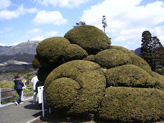 On the other side of the checkpoint, we walked up to a mount Fuji view point...where i saw this very strangly trimmed tree. anyway, there's mount Fuji hidden by a bit of tree...at least i think it's mount Fuji.