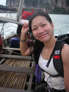 Originally the climb is meant to be started by climbing 'tarzan' which is not even rock, but a large and very cool tree which seems to be growing tendrils. however, as we were making our way to start the climb we were stopped (very politely) by a guy called Bob, who tolds us how the tree was actually worshiped by the buddists and requested that we use the ladder instead. And, yes, there was a ladder. Apparently from the weddings which take place hanging from the rocks over Tonsai beach.