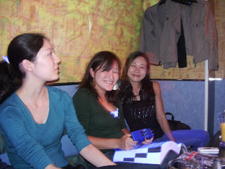 So! What to do, you’re stuck in a room with a karaoke machine and several people who don’t know each other and are thus nervous. I was forced to sing first, despite my feeling of DEATH and my lovely sore throat. And I have to say I was AWEFUL. We force a couple more songs while people get into the swing of things. I was trying to convince Is to sing but she was having none of it, apparently some alcoholic lubrication was required. THEN, we made Annalisa chose a song (she was complaining that she didn’t know any of the things we were singing and demanded some thing more from her time!) and that girl can sing, and sing well. I actually thought it was the karaoke machine that had a voice for you to sing along with, but no, it was actually Annalisa singing. Everyone else kinda stopped singing as not to ruin Annalisa’s good work. After a couple of drinks, even Ian and Is got into it, which was good to see. It was hard to believe that we’d passed 2hours in there and was more fun than I thought it would be; which was cool.