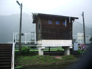 The trip down took about an hour through the Japanese country side on a single track in very heavy rain.