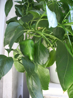 You'll be glad to hear that some of my plants are still alive, despite the killer summer heat. My pepper plants are in fact soldiering on and making me lots of tiny peppers.