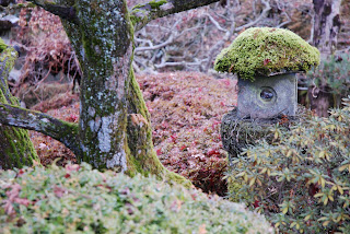 Making a full 180degree turn we then went into a Japanese garden near the entrance to the first temple along our route... [see above photo] . Just outside another shrine...there were lots of stone laterns, also nicely covered in moss... [see photo below]