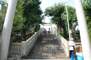 There were even food stalls set up in our quiet neighbourhood. They positioned themselves at the traffic junction closest to our house on the road leading up to the temple just north of the Botanical gardens. The guy at the takoyaki stall looks rather warm - and considering that he's in front of a hot plate with the hot weather, I don't envy him.