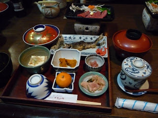 We had booked in to stay in one of the Gassho's, which provided hefty dinners and breakfasts. The first Gassho that we stayed in was also entertaining two other familys; both familys had four generations with them; a great grandparent, grandparents, mothers and fathers and several children. In total about 16 people were seated around the main tatami room eating dinner.