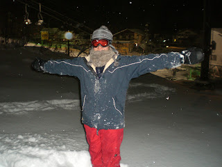 Anyway, we got to Naeba at 5am, whence upon we had to try and find our hotel...called White Palace...which was appropriately painted brown (Amy pointed this out to me...I wouldn't even have noticed the irony of the name...). Reception didn't open to 8am, so we napped in some chairs in the foyer/smoking-room-of-lung-death. There were several other Japanese (who'd been on our bus) napping on the floor too....which was kind of reassuring. At 7am (maybe they pitied us and got up early for our benefit) the reception sprung to life and we managed to get our ski wear hired (apart from Greg and Akiko who had to go to a completely different shop to get kitted out...not a good enough range of shoe sizes apparently...). By 930 we were on the hotel provided shuttle bus and heading to the main mountain...