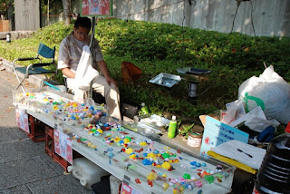 There were even food stalls set up in our quiet neighbourhood. They positioned themselves at the traffic junction closest to our house on the road leading up to the temple just north of the Botanical gardens. The guy at the takoyaki stall looks rather warm - and considering that he's in front of a hot plate with the hot weather, I don't envy him.