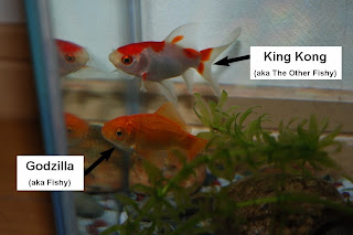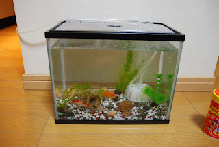 After a long and hard ten days, our fishy was tired and looking a little stressed (that and his water was getting dirty after only one day as opposed to one week resulting in him swimming in a tank of filth for a the last few days). So we decided that it was time for him to get a tank. An actual tank with a filter and more pebbles, as opposed to the plastic bread box he had been living in.