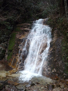 As explained to us by the minshuku owner, the hike on the Tsumago [妻籠] side of the 'Tsumago-Magome Hiking Trail was quite nice and peaceful, mainly walking through forest and not too close to the road. We had actually stopped the car not too far from the Otaki-Metaki Falls, so we walked along the highway (as suggested by the minshuku owner) in order to approach the falls from downstream. This approach would apparently give us much nicer photos of the falls, than if we followed the hiking trail (as the path takes you past the upstream end of the falls).
